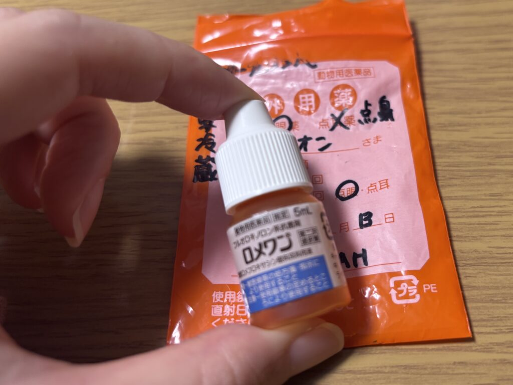 - 1日2回-3回、両目に1滴ずつ、1週間※可能なら点鼻もとのことでした