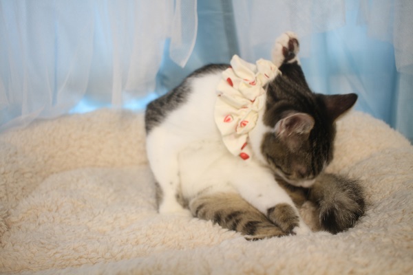 ※シュシュタイプはゴムがしっかり伸縮して猫が自分で外せるゆとりがあるかどうか - 猫が動いても苦しそうにしていない
