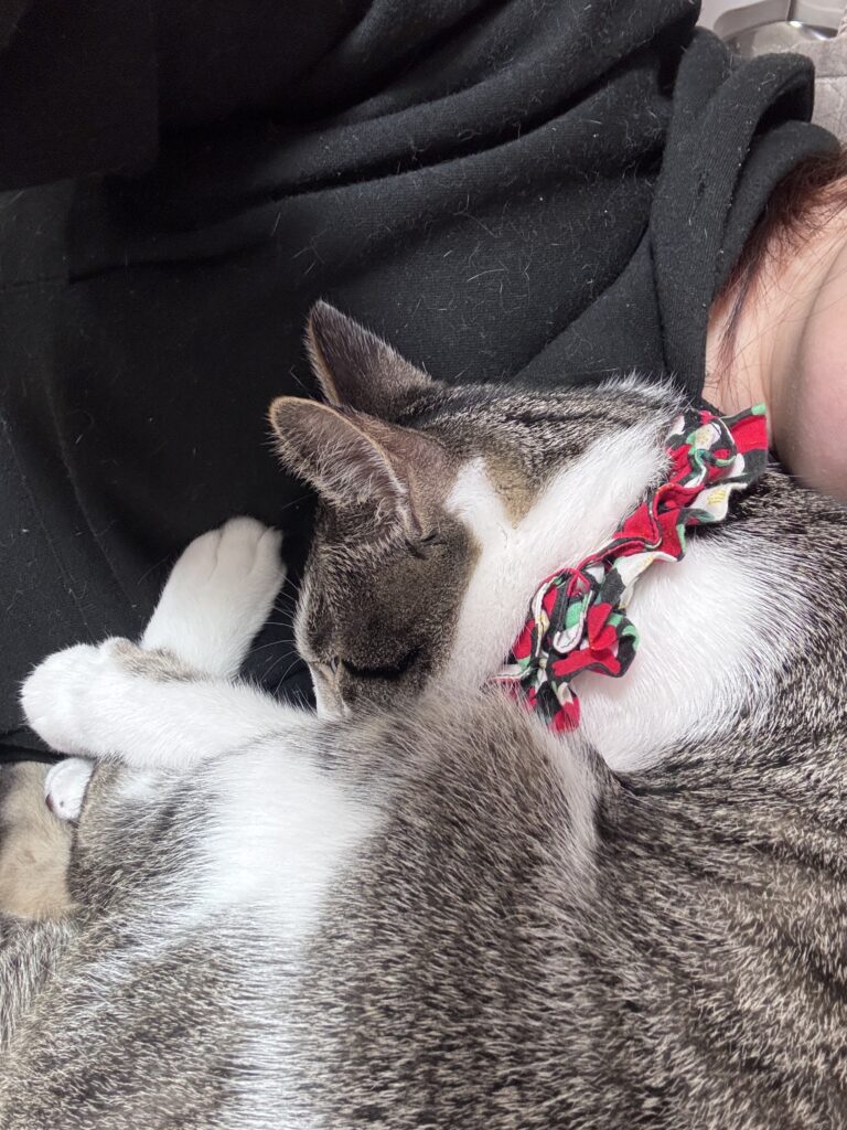 で、出来上がり。つけてもらうと全然嫌がりません。